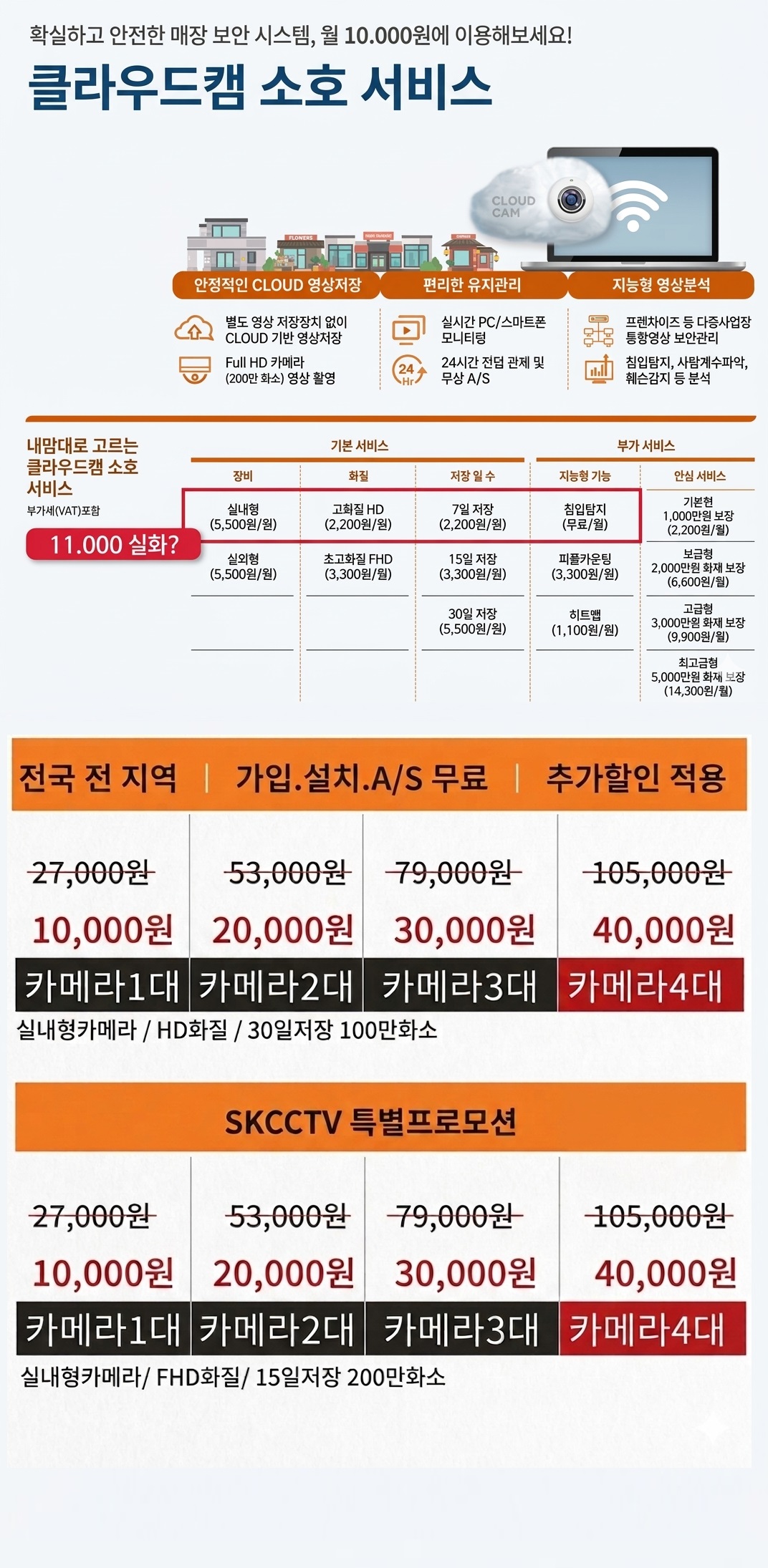 확실하고 안전한 사업장,가정집 보안 시스템, 월 10.000원에 이용해보세요!